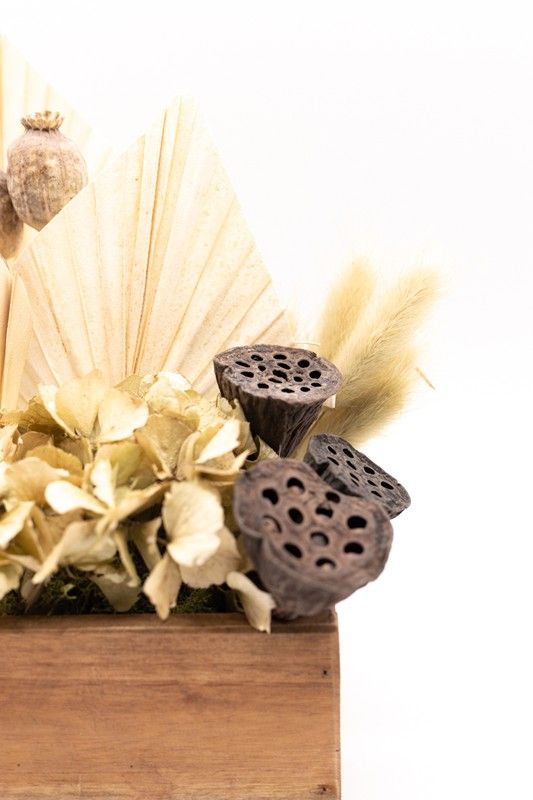 Las flores secas y flores preservadas que usamos en todas nuestras colecciones son un producto 100% natural tratadas para que duren eternamente y prácticamente libre de mantenimiento. No solo son ecológicas, sino que gracias a su excelente relación calidad precio suponen un gran ahorro para tu bolsillo. Además, puedes elegir multitud de variedades por ello podemos crear diferentes composiciones de diseño floral entre una extensa y detallada selección de flores.El único requisito para que mantengan toda su belleza es evitar colocarlas a lado de fuentes de luz directa para que no se decoloren y retirarles el polvo de vez en cuando, con la ayuda de una gamuza o de un secador usando aire frío, con cuidado de no dañar sus delicados pétalos.