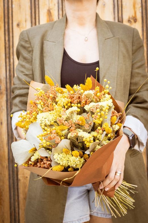 Las flores secas y flores preservadas que usamos en todas nuestras colecciones son un producto 100% natural tratadas para que duren eternamente y prácticamente libre de mantenimiento. No solo son ecológicas, sino que gracias a su excelente relación calidad precio suponen un gran ahorro para tu bolsillo. Además, puedes elegir multitud de variedades por ello podemos crear diferentes composiciones de diseño floral entre una extensa y detallada selección de flores. El único requisito para que mantengan toda su belleza es evitar colocarlas a lado de fuentes de luz directa para que no se decoloren y retirarles el polvo de vez en cuando, con la ayuda de una gamuza o de un secador usando aire frío, con cuidado de no dañar sus delicados pétalos.